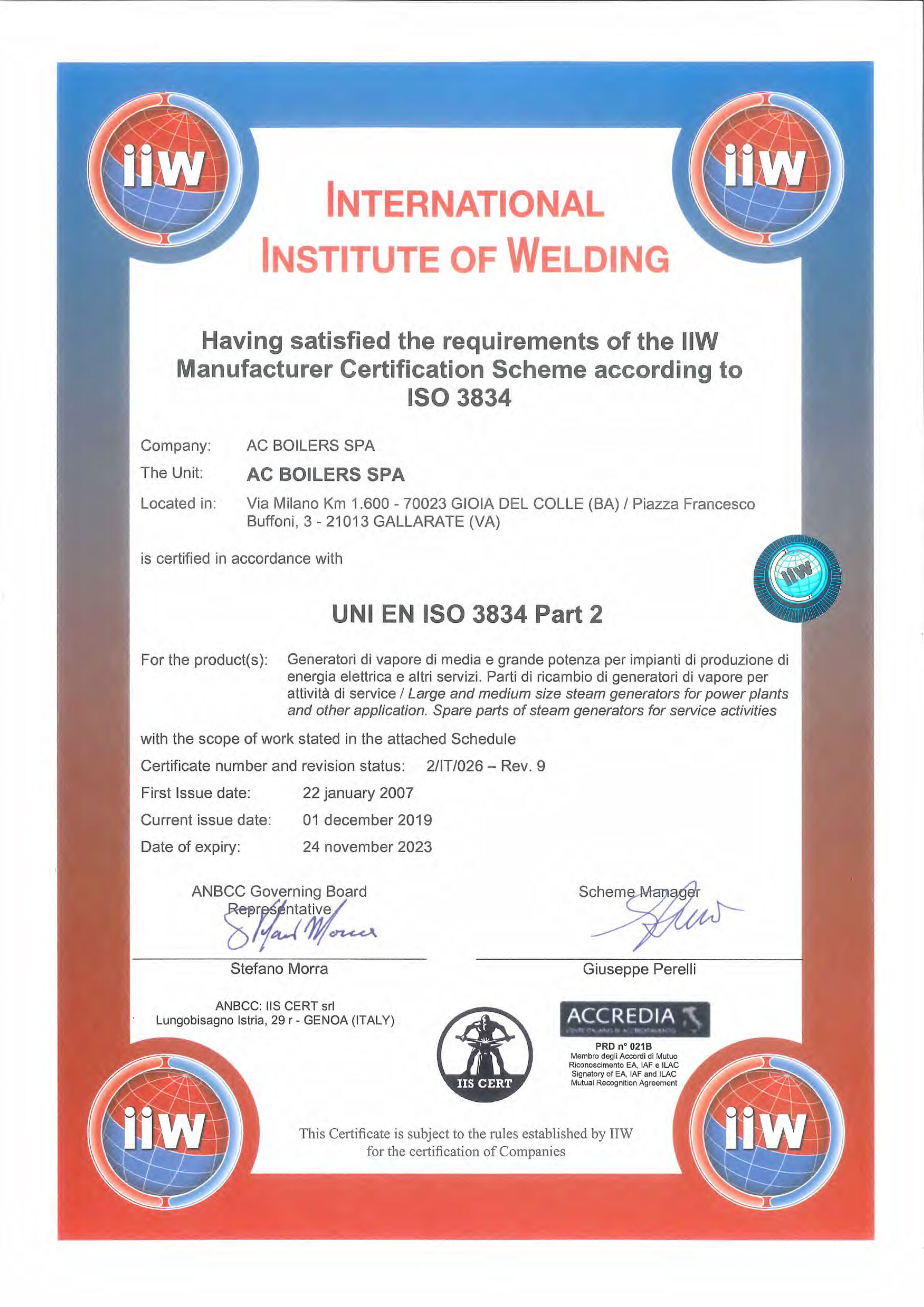 - SOA: to participate in tenders for public works in Italy. AC Boilers has obtained the OS14 category for waste and recovery plants and the 8a classification